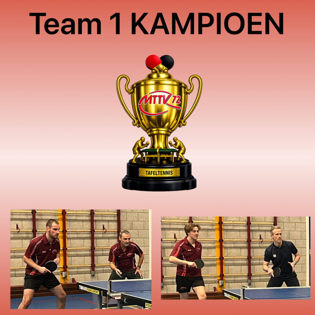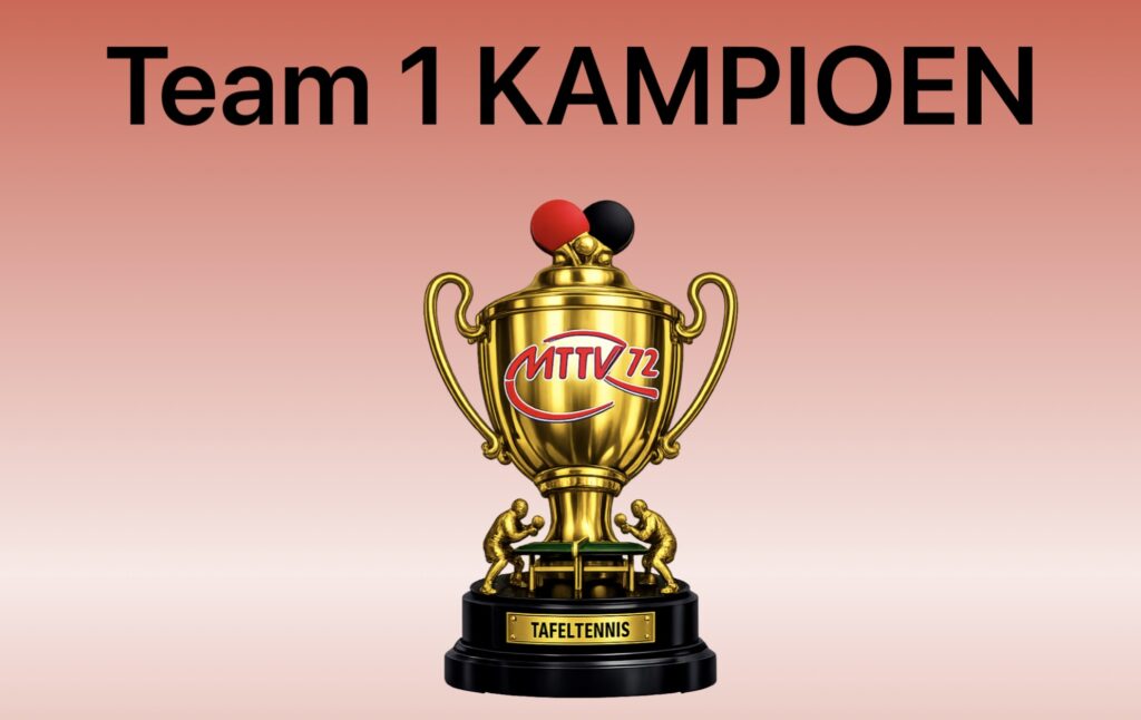 Het eerste team van MTTV ‘72 is dit voorjaar kampioen geworden in de 1e klasse. Gefeliciteerd Stijn Smits, Rudi Spinner, Pascal-André Wolters en Erik-Pieter Spierings.